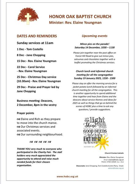 hot cross buns given out at Easter in the local shopping area, Mince pies at Christmas, open door events, twinning our toliets with those in poorer countries to provide better toliet/ sanitation